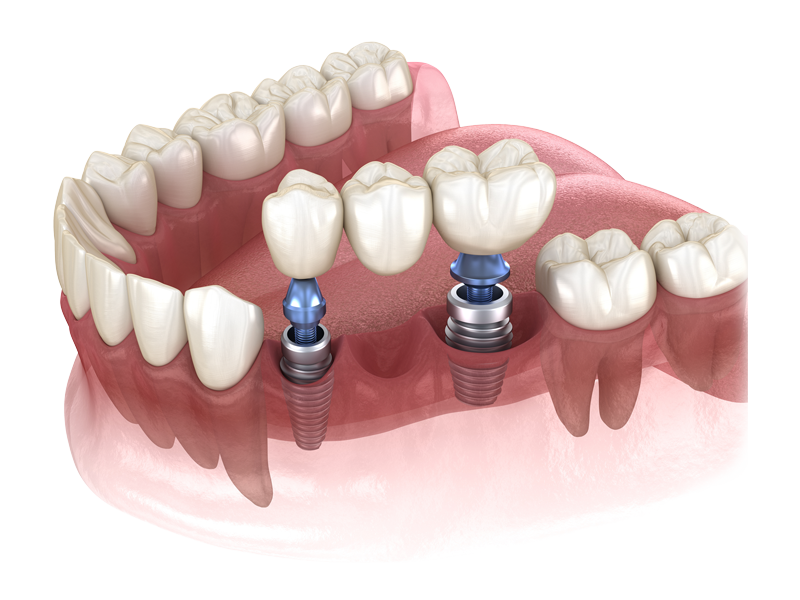 Dental implants are permanent replacements for missing teeth. They consist of a titanium post placed into the jawbone, which acts as an artificial tooth root. A crown is then attached to restore the appearance and function of a natural tooth.